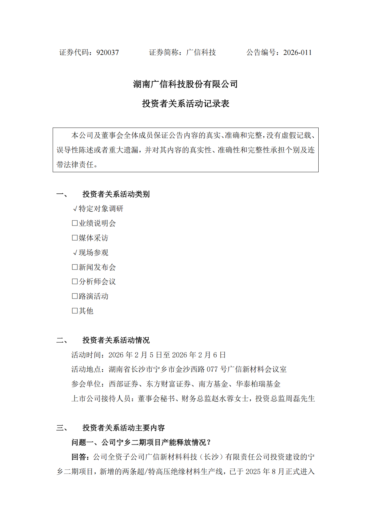 关于投资者关系活动记录表的公告