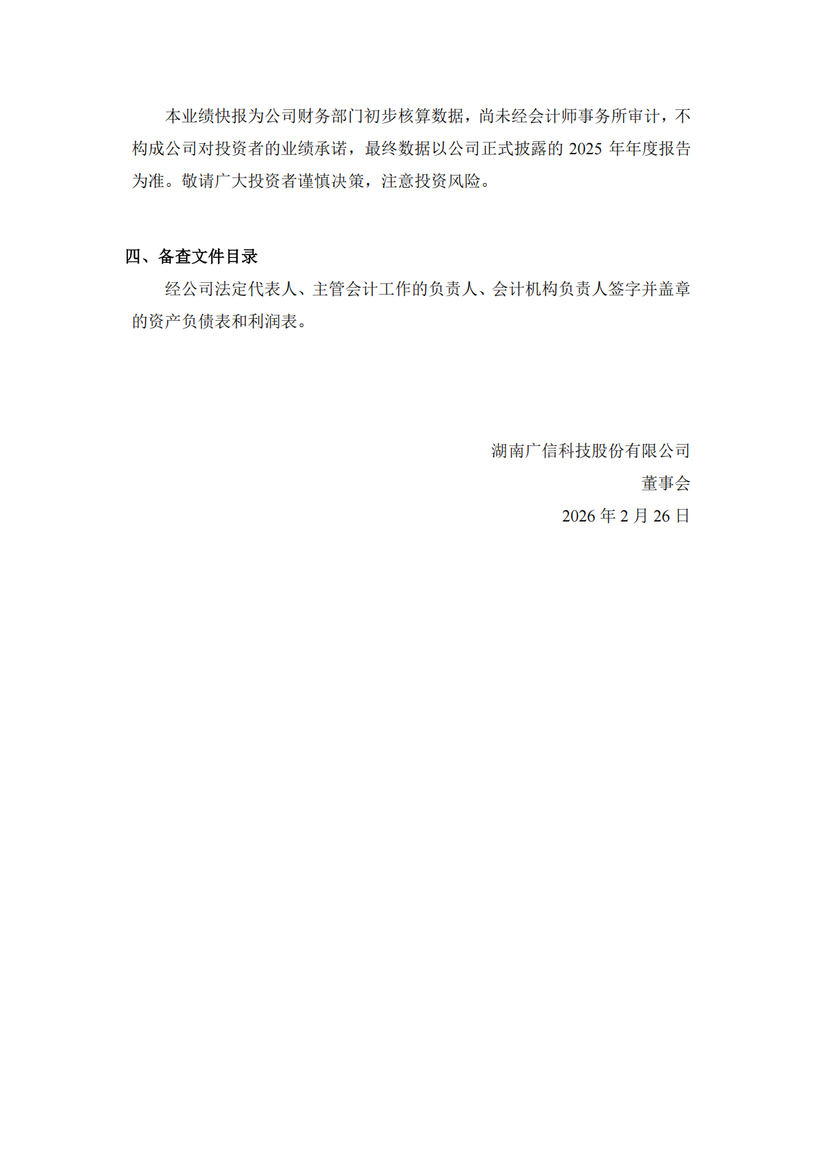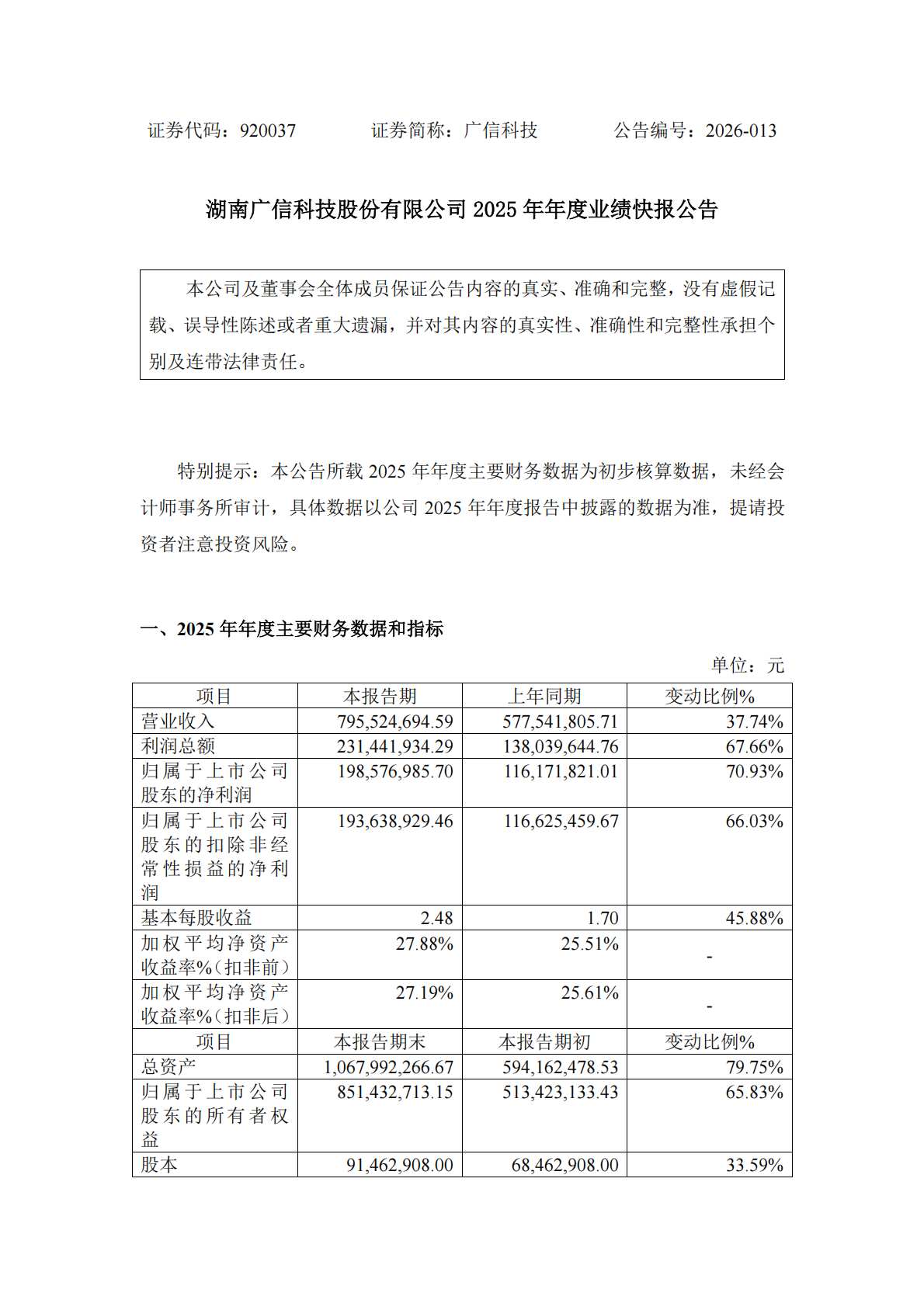 2025 年年度业绩快报公告